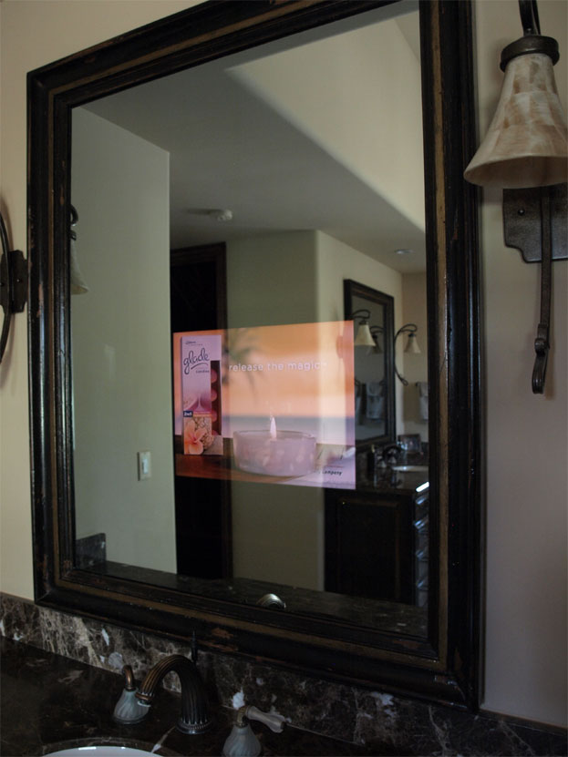 Custom TV Inside A Mirror - In This Photo the TV Is On