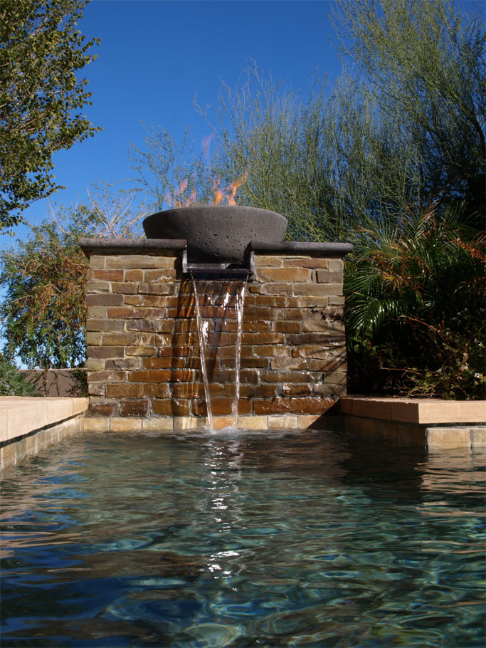 Custom Natural Gas Fire Bowl & Water Fountain At Pool - Controlled via iPhone/iPad